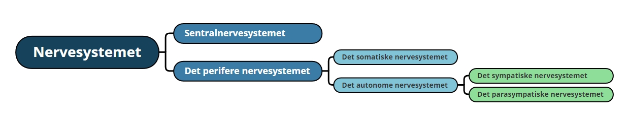 Nervesystemet er den overordnede styringsmekanismen i kroppen. Det samler inn, tolker og reagerer på informasjon både fra kroppen og fra omgivelsene. Nervesystemet kan grovt deles inn i to deler: sentralnervesystemet og det perifere nervesystemet.